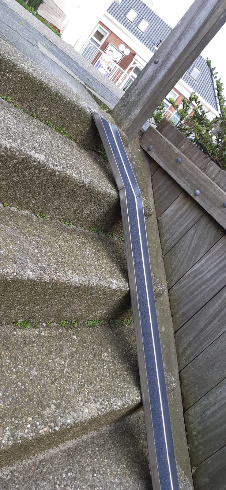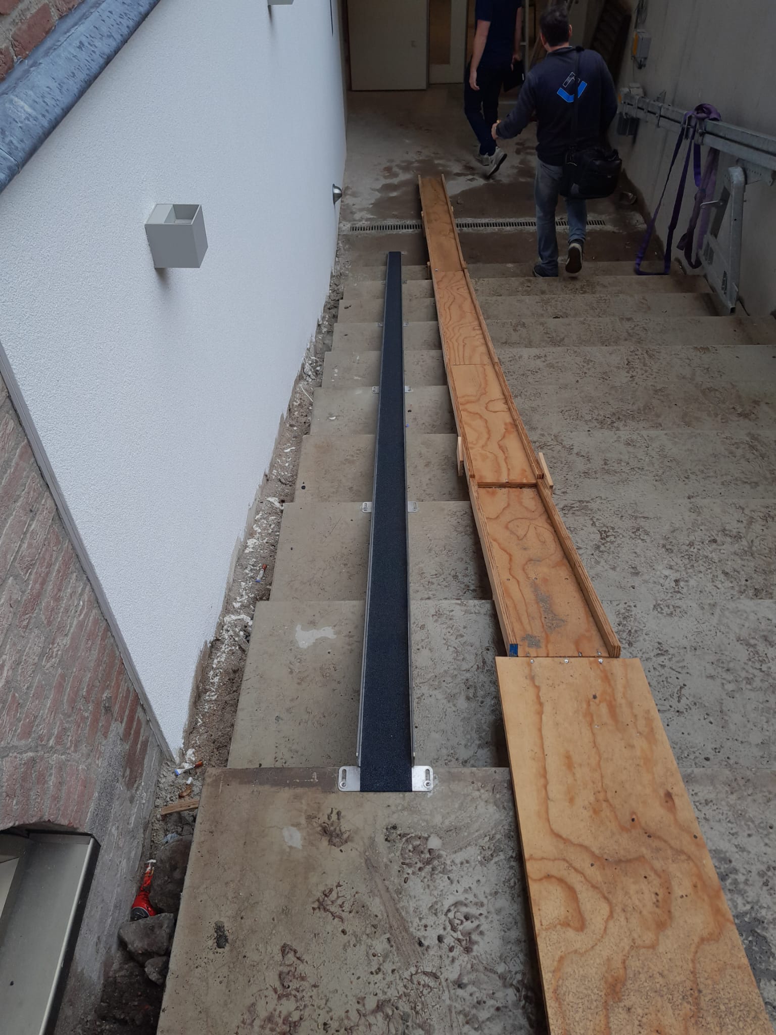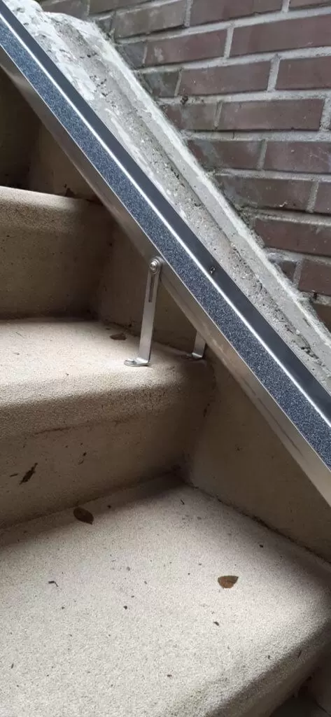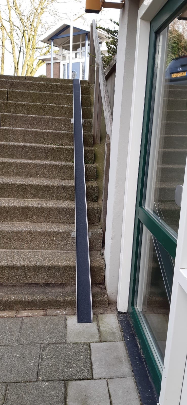 Die maximale Länge pro Klappmodul beträgt 2,98 Meter. Für längere Treppen können mehrere Module hintereinander montiert werden, um eine vollständige Lösung zu schaffen. Sowohl die Klappschiene als auch das Klemmmechanismus bestehen vollständig aus rostfreiem Stahl (RVS), was für ein robustes, wartungsarmes Design sorgt, das verschiedenen Wetterbedingungen und starker Nutzung standhält.