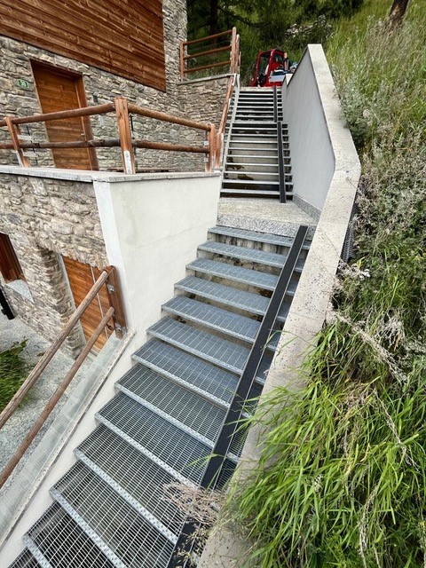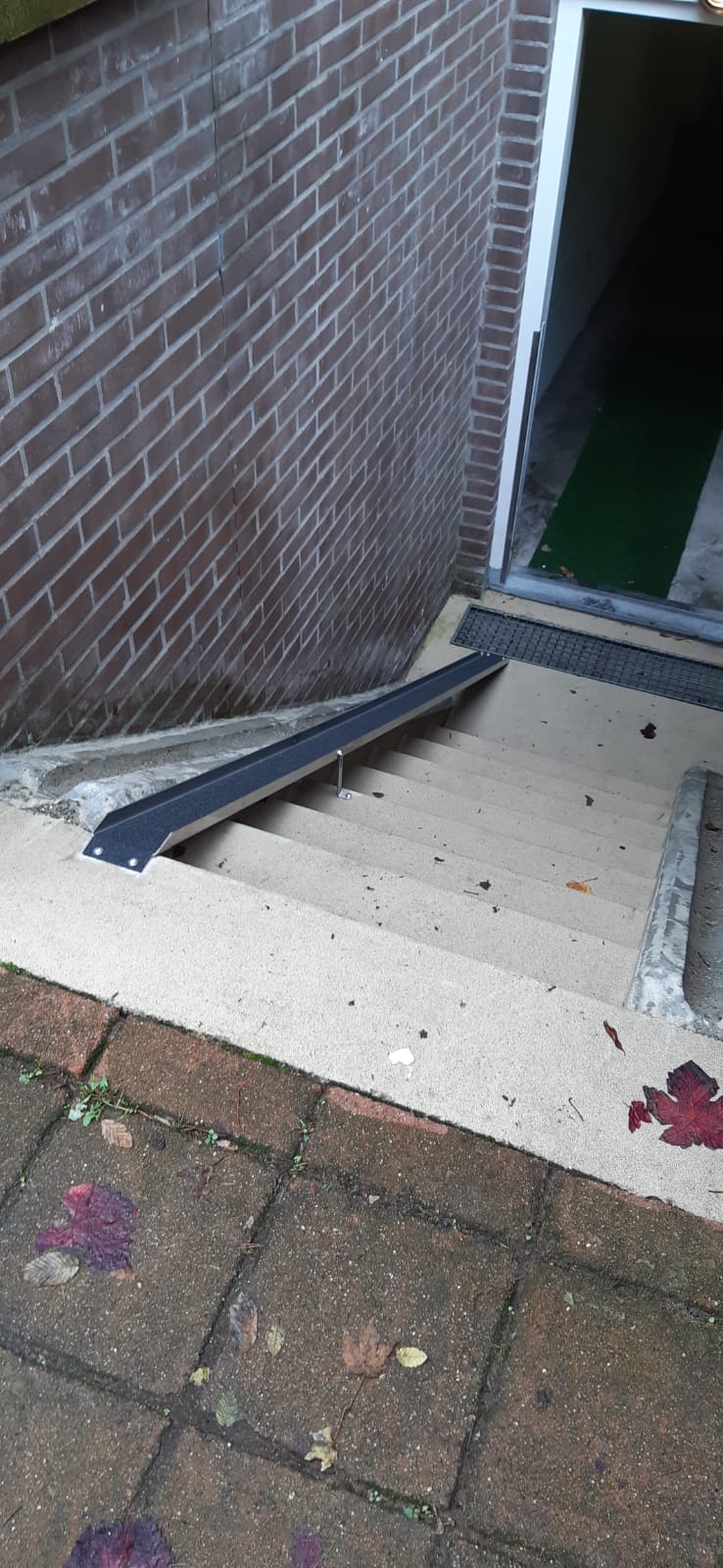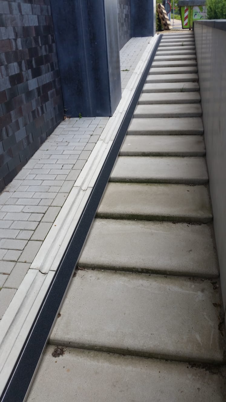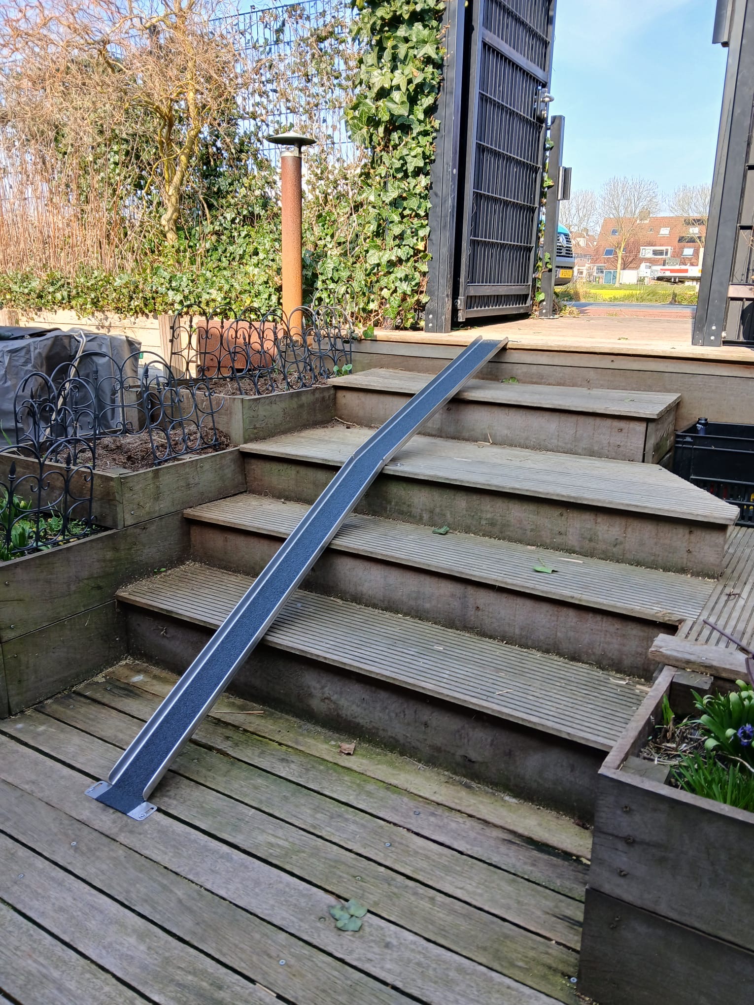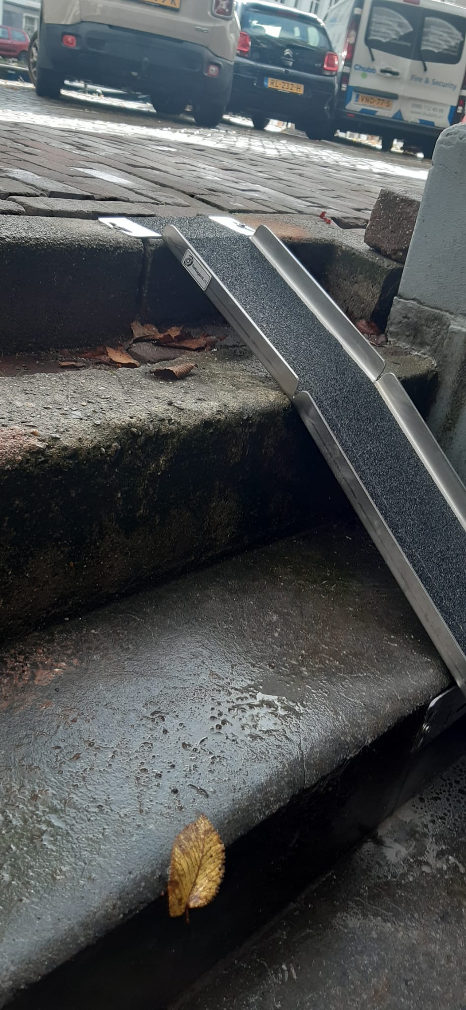 Die maximale Länge pro Klappmodul beträgt 2,98 Meter. Für längere Treppen können mehrere Module hintereinander montiert werden, um eine vollständige Lösung zu schaffen. Sowohl die Klappschiene als auch das Klemmmechanismus bestehen vollständig aus rostfreiem Stahl (RVS), was für ein robustes, wartungsarmes Design sorgt, das verschiedenen Wetterbedingungen und starker Nutzung standhält.