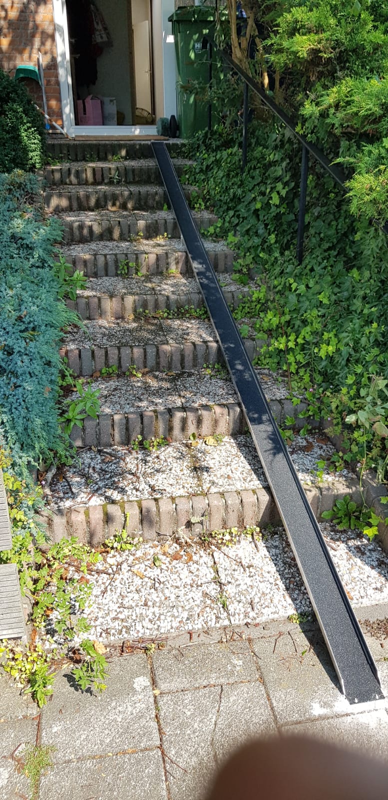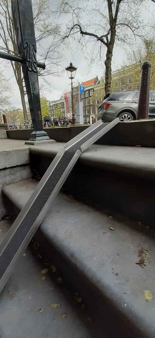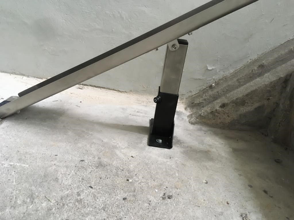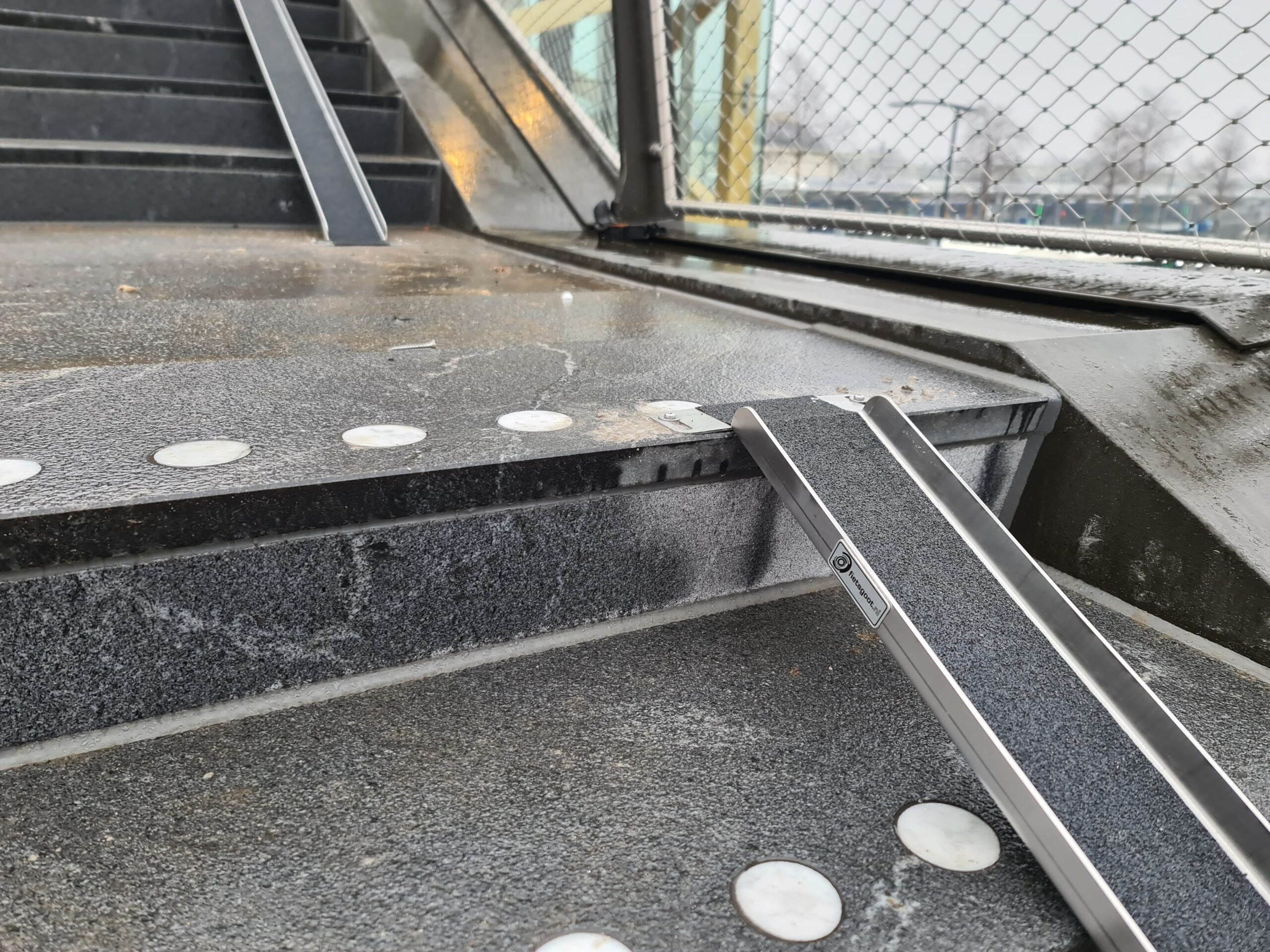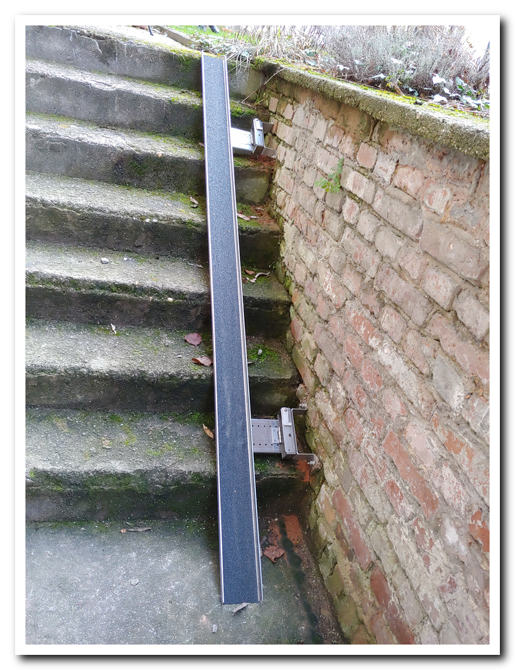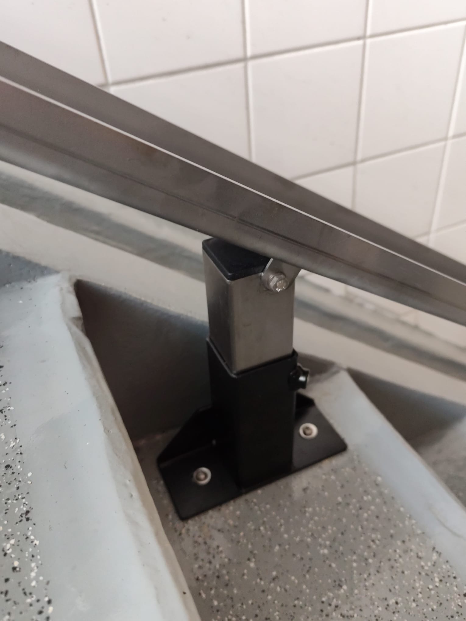 Lo Minck Mobility hat spezielle, höhenverstellbare Halterungen entwickelt, die einfach installiert werden können, um den Neigungswinkel der Edelstahl-Fahrradschiene zu optimieren. Diese Halterungen sind für den Innen- und Außeneinsatz geeignet und bieten die Flexibilität, die Neigung an die Gegebenheiten der Treppe anzupassen.