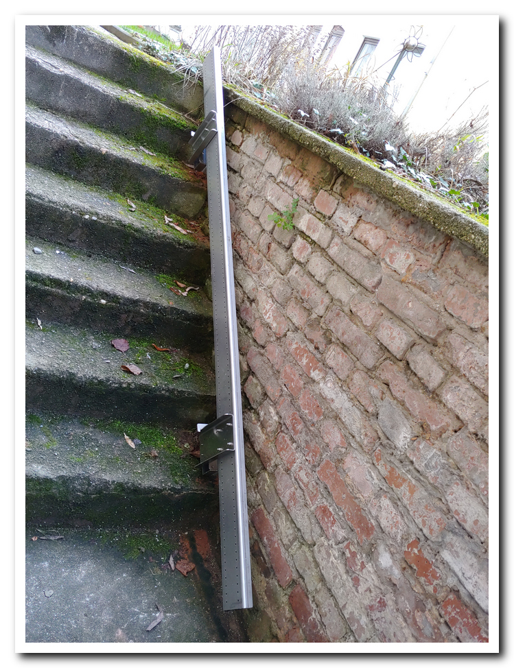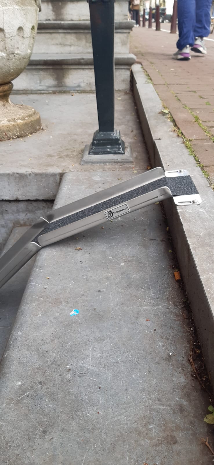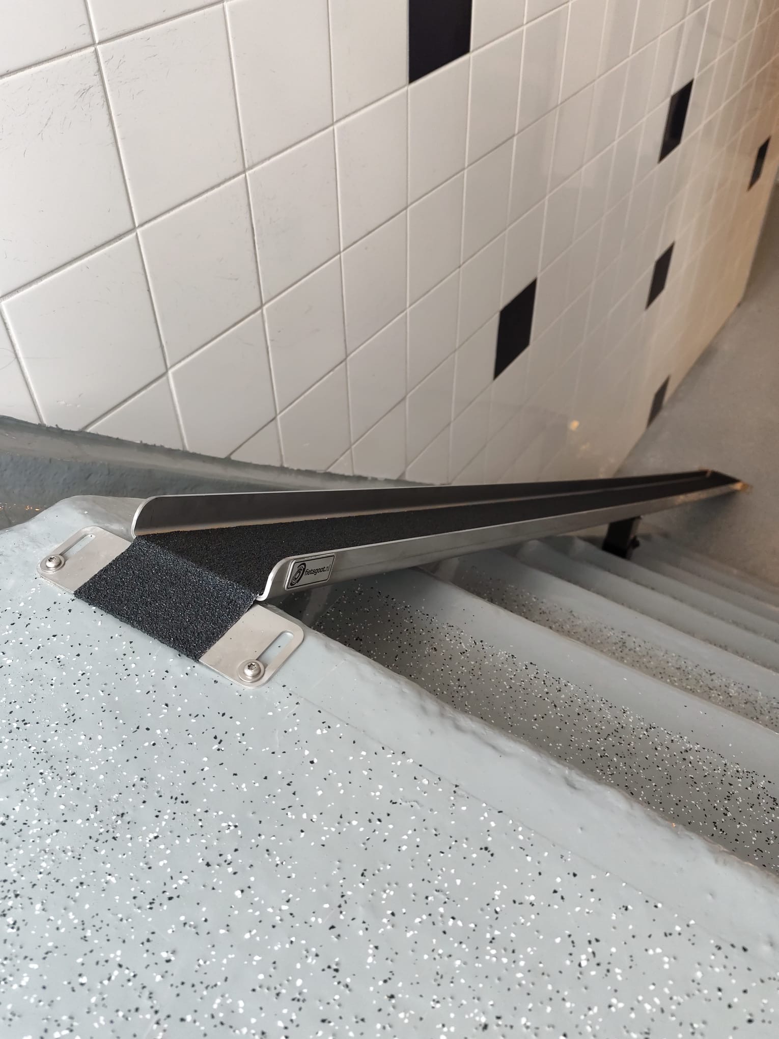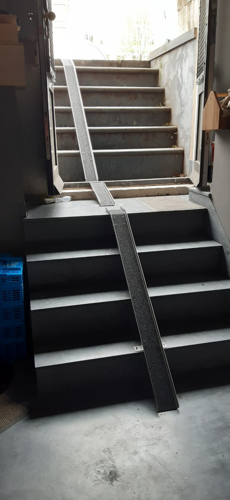 Lo Minck Mobility hat spezielle, höhenverstellbare Halterungen entwickelt, die einfach installiert werden können, um den Neigungswinkel der Edelstahl-Fahrradschiene zu optimieren. Diese Halterungen sind für den Innen- und Außeneinsatz geeignet und bieten die Flexibilität, die Neigung an die Gegebenheiten der Treppe anzupassen.