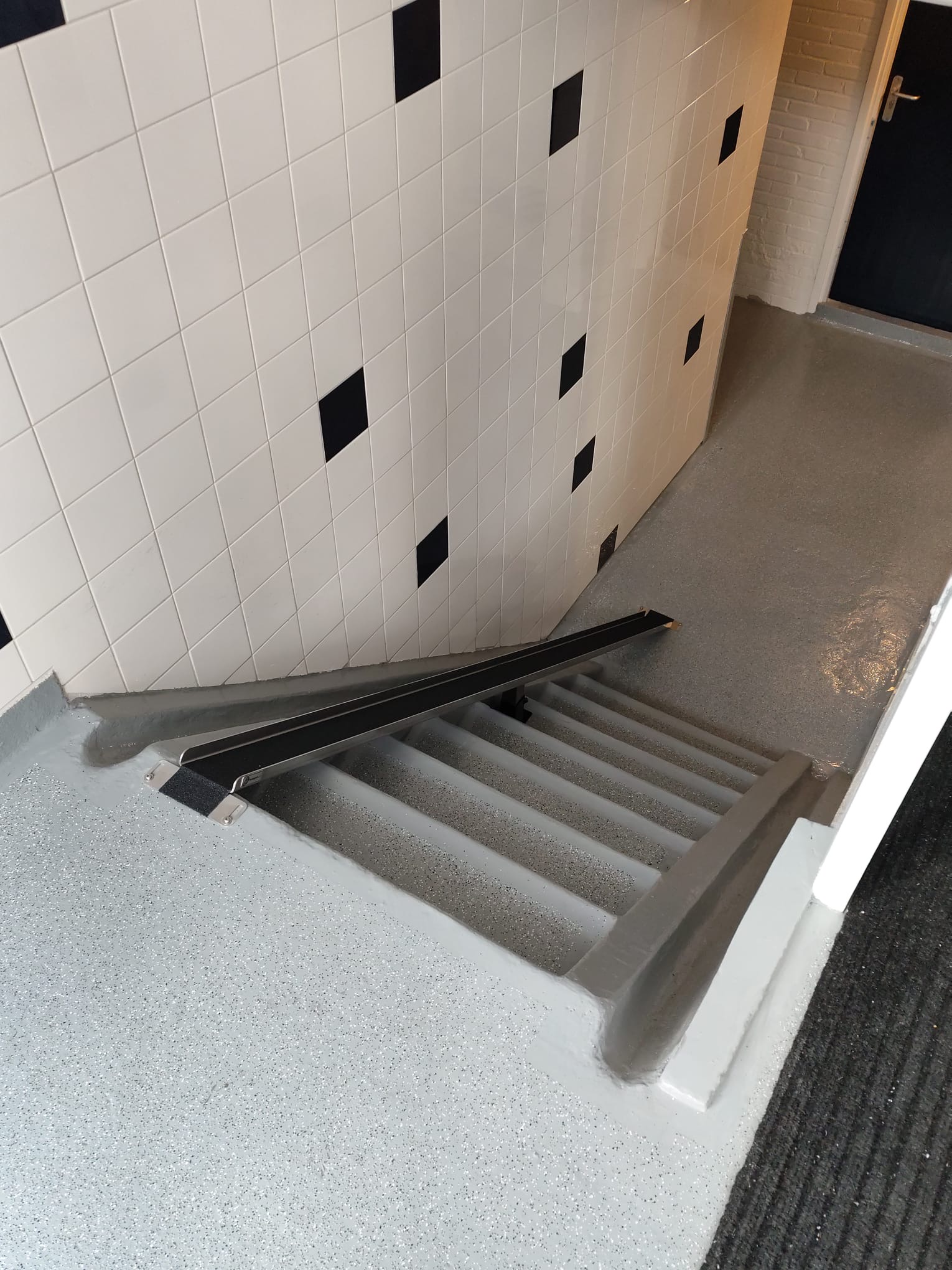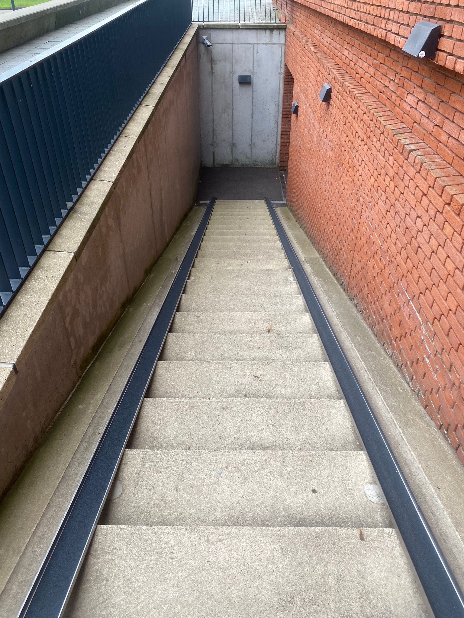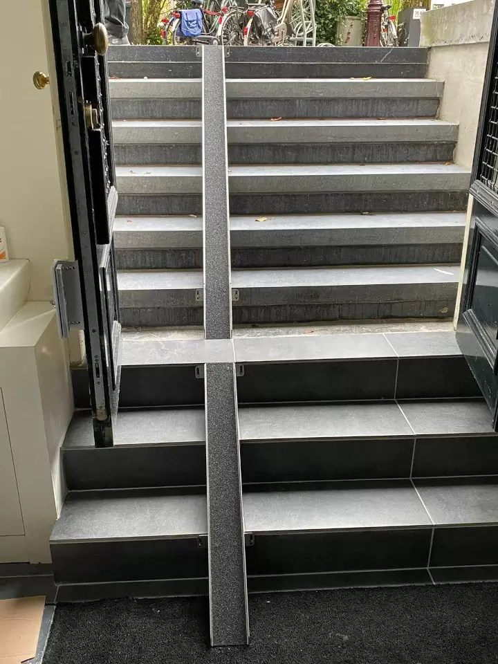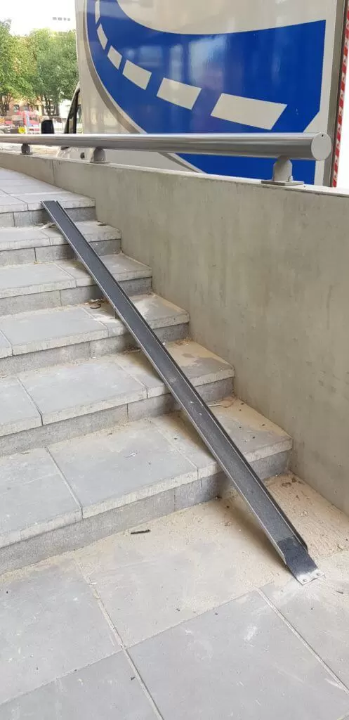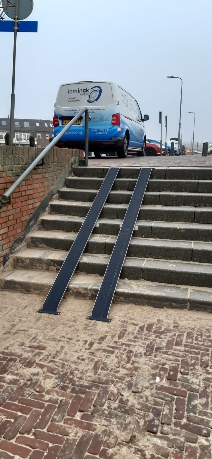 Die Edelstahl-Fahrradschiene von Lo Minck Mobility ist ein robustes und langlebiges System für den Fahrradtransport sowohl nach oben als auch nach unten. Sie besteht aus hochwertigem rostfreiem Stahl (RVS304) und bietet eine zuverlässige Lösung für das Führen von Fahrrädern, E-Scootern und Motorrädern über Treppen. Das U-Profil der Rinne dient als Spur, in der das Fahrzeug je nach Richtung nach oben oder unten geführt wird. Der Nutzer muss das Fahrrad vollständig aus eigener Kraft bewegen. Für zusätzliche Unterstützung beim Auf- oder Abstieg wird auf VeloComfort® verwiesen.