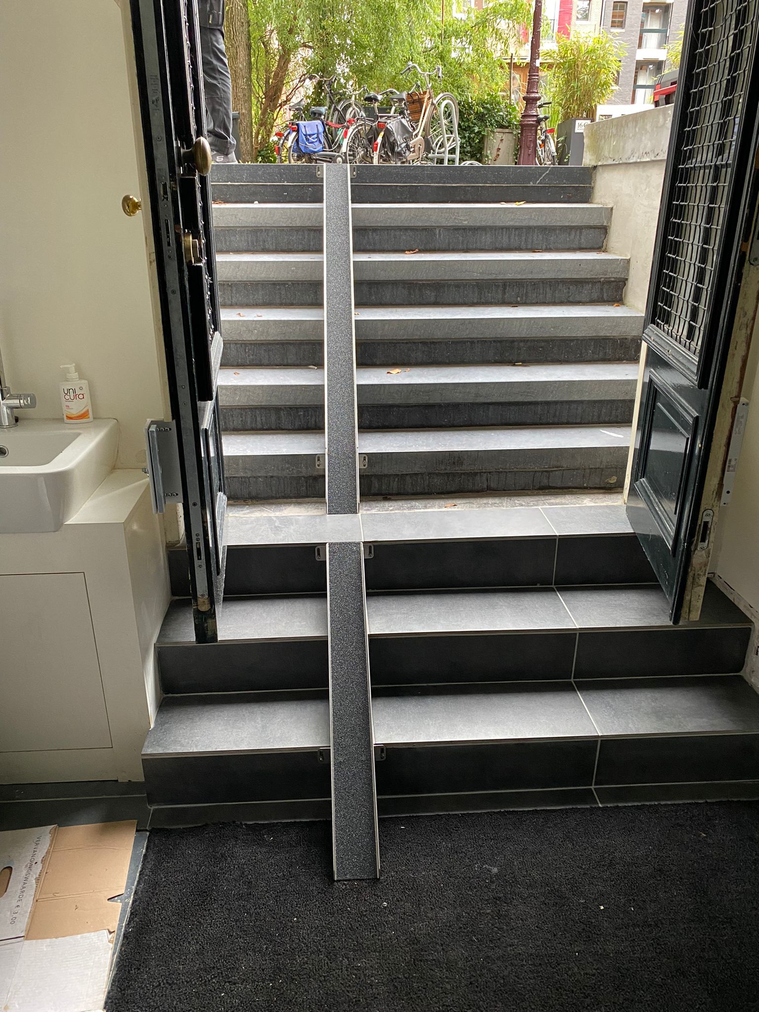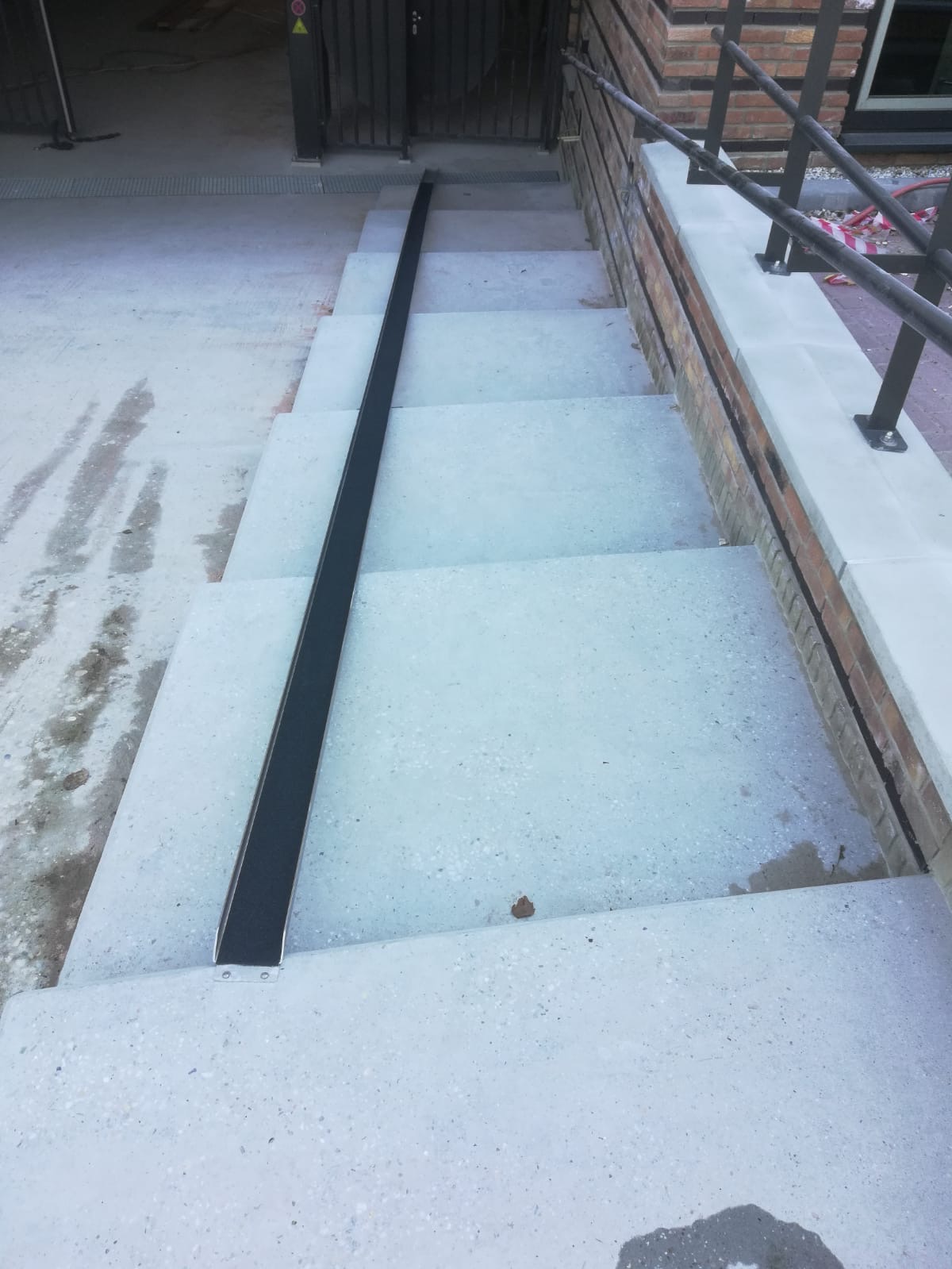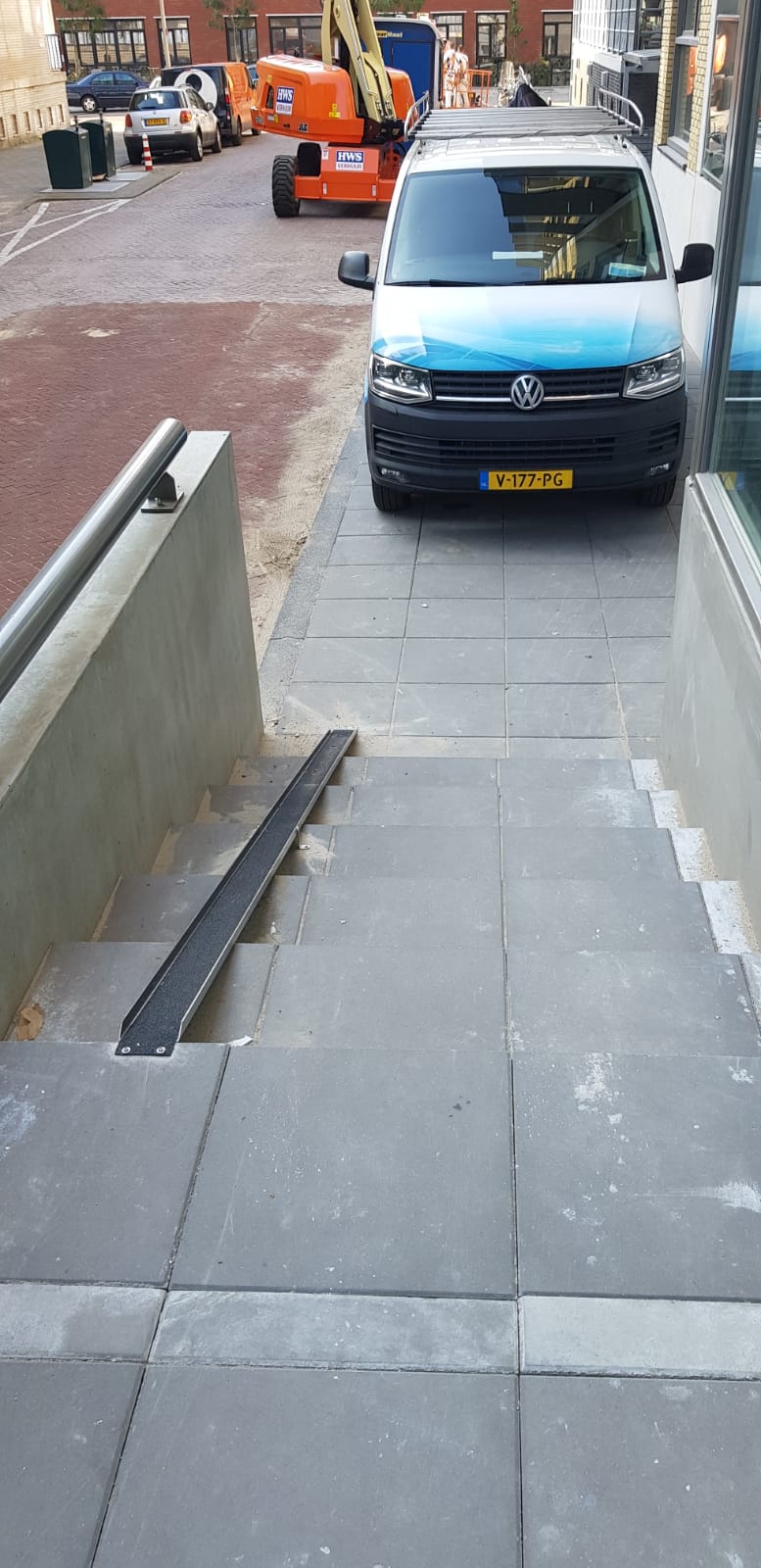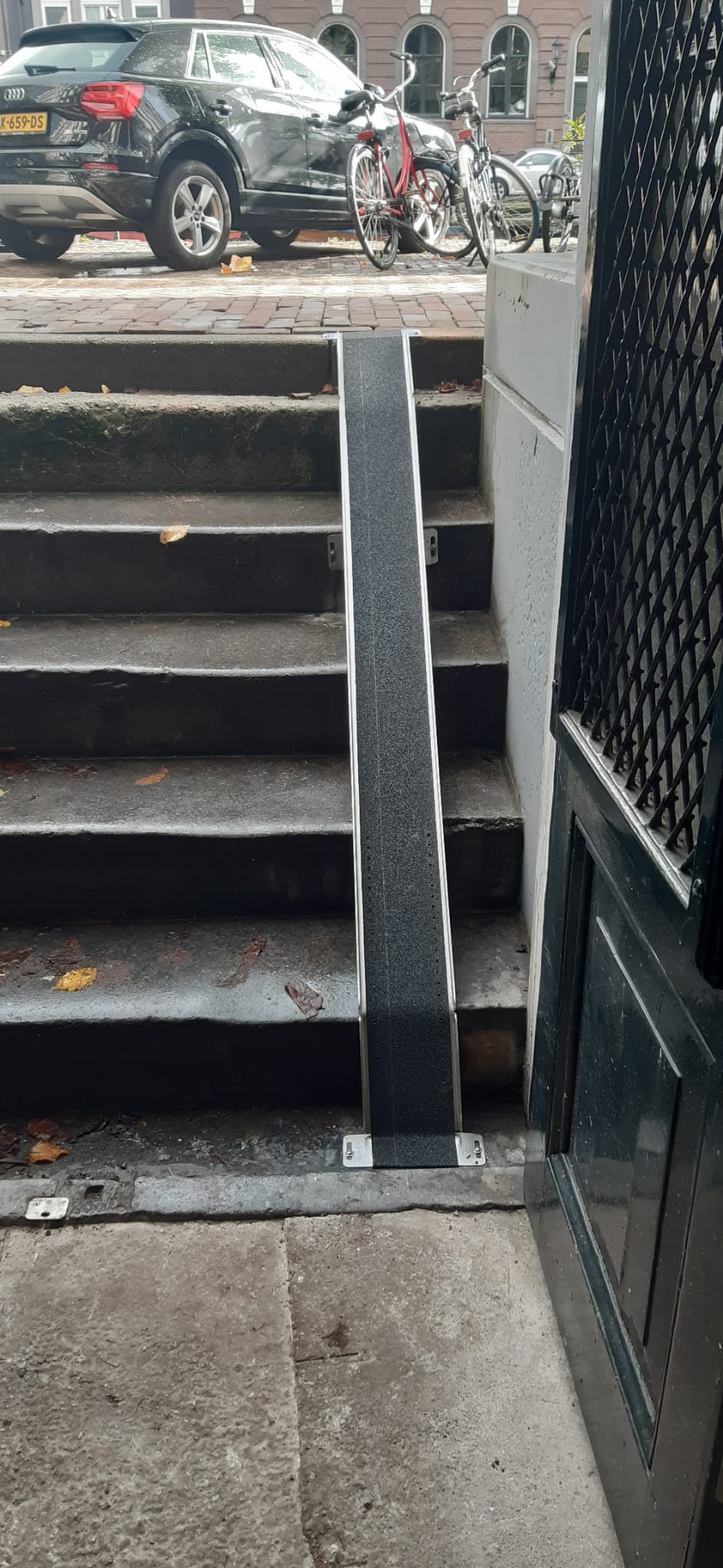 Die Edelstahl-Fahrradschiene von Lo Minck Mobility ist ein robustes und langlebiges System für den Fahrradtransport sowohl nach oben als auch nach unten. Sie besteht aus hochwertigem rostfreiem Stahl (RVS304) und bietet eine zuverlässige Lösung für das Führen von Fahrrädern, E-Scootern und Motorrädern über Treppen. Das U-Profil der Rinne dient als Spur, in der das Fahrzeug je nach Richtung nach oben oder unten geführt wird. Der Nutzer muss das Fahrrad vollständig aus eigener Kraft bewegen. Für zusätzliche Unterstützung beim Auf- oder Abstieg wird auf VeloComfort® verwiesen.