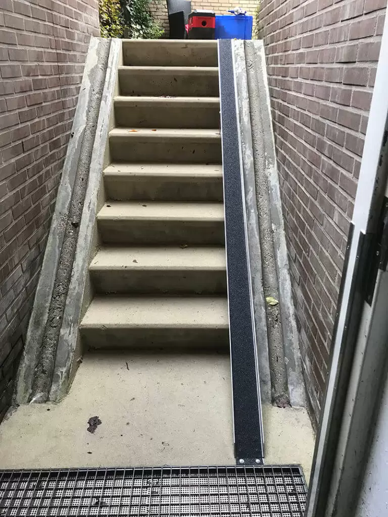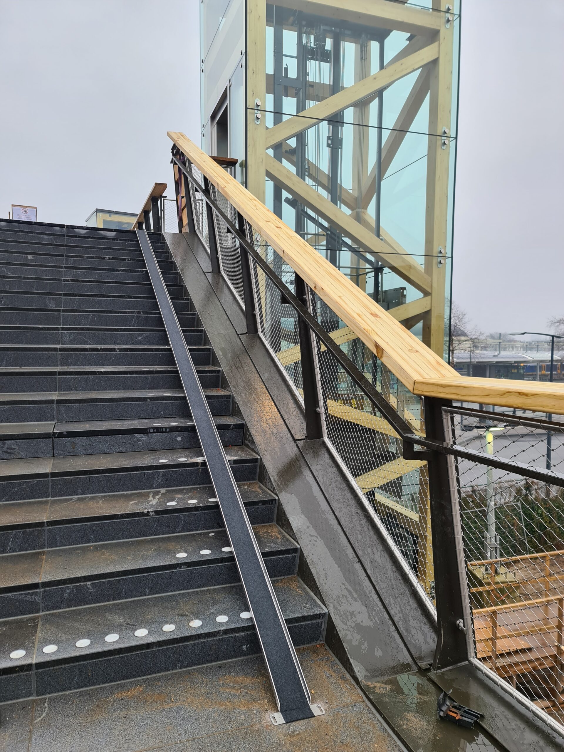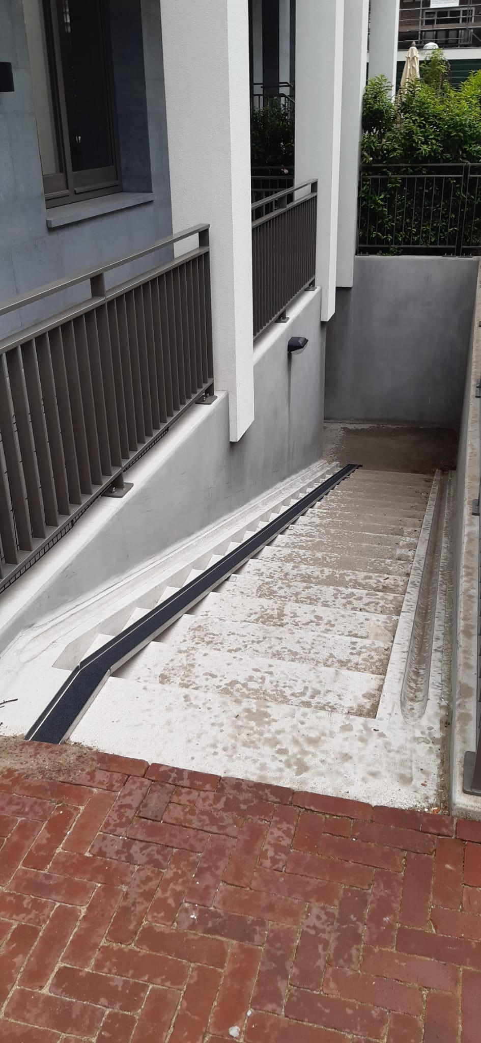 Viele Fahrradtreppen haben einen steilen Neigungswinkel, was den Transport von Fahrrädern erschwert. Um die Zugänglichkeit zu verbessern, bietet Lo Minck Mobility die Möglichkeit, den Neigungswinkel der Edelstahl-Fahrradschiene optional abzuflachen – je nach verfügbarem Platz am unteren Ende der Treppe. Diese Anpassungen sorgen für ein angenehmeres und komfortableres Nutzungserlebnis für den Radfahrer.