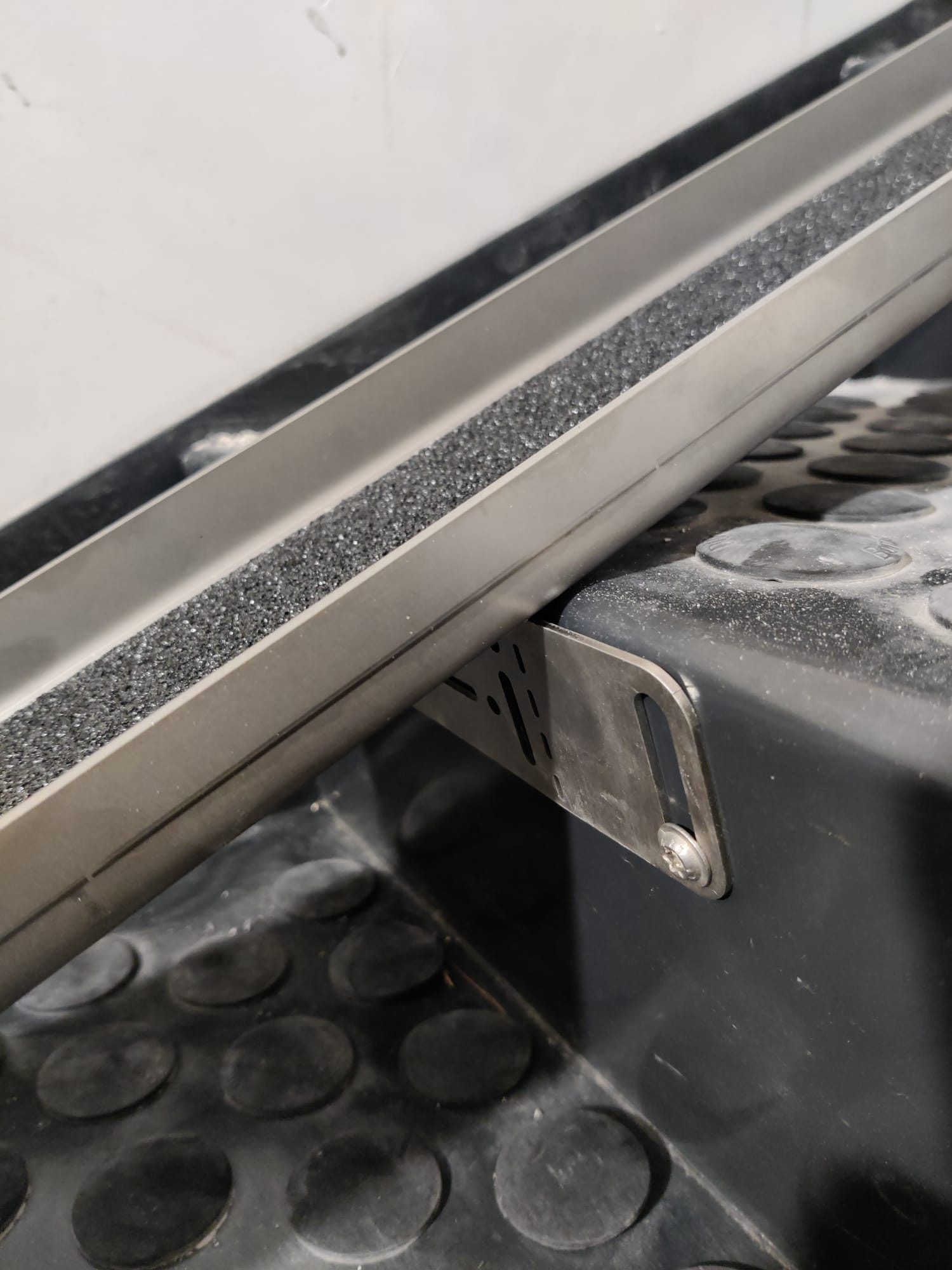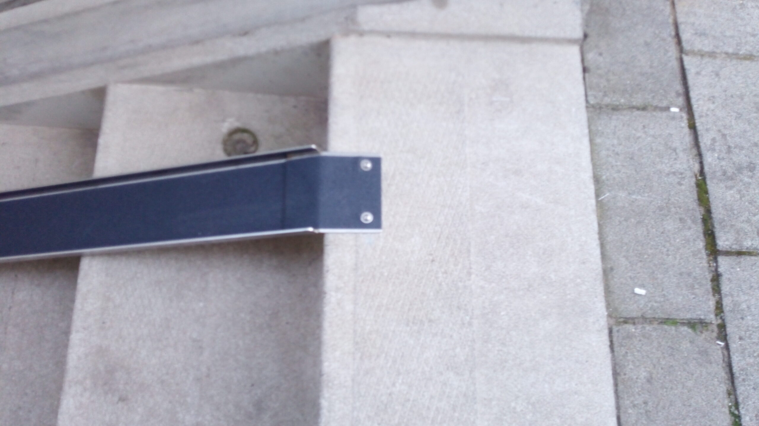 Die Edelstahl-Fahrradschiene besteht aus 3 mm dickem Edelstahl (RVS304) und bietet eine besonders stabile Konstruktion, die intensivem Gebrauch und Witterungseinflüssen standhält. Die Montage an der Treppe erfolgt einfach mit speziell entwickelten Edelstahl-Montageplatten, die um die Stufenkanten gefaltet werden. Dies ermöglicht eine schnelle und unkomplizierte Installation gemäß der beiliegenden Anleitung. Die rutschfeste Bodenfläche bietet zusätzlichen Halt und verhindert seitliches Abrutschen, auch bei Nässe oder Schnee.